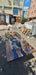 The Walnut Dining Table is a piece of furniture that has a place for a group of people to gather around and enjoy a meal. Table top can also be used for reading newspaper or books. The table is made from a walnut wood. Epoxy wood table is custom and handmade. All edges of the table are handsanded for smooth surface. The raw walnut wood used in its natural form is a sturdy and durable type of wood that is perfect for a table. The legs also assist the table top for even position. The table top has dark blue resin color that has a metallic sheen to it.