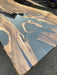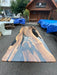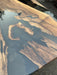 Next, our artists blend an array of mesmerizing epoxy resin colors, resulting in a vibrant, swirling dance of hues that mimic the depths of the ocean or the colors of a breathtaking sunset. The epoxy is carefully poured and manipulated to form captivating patterns that are uniquely yours – no two tables are ever alike!