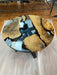 Your family deserves a gathering place to be proud of. This round table is made with combination of Walnut and Epoxy which give it antique and unique touch. You will love their mix color shades as well. The Round Dining Table with blue epoxy is a perfect spot for family time. Epoxy Blue Resin Table also saves the space in the room. Its rustic and industrial design is complimented by the blue epoxy coating that creates a beautiful contrast with the wood. The table is 48” in diameter and made to order to fit your space.The round epoxy walnut slab is supported by sturdy wooden legs.
