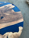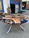Your family deserves a gathering place to be proud of. This round table is made with combination of Walnut and Epoxy which give it antique and unique touch. You will love their mix color shades as well. The Round Dining Table with blue epoxy is a perfect spot for family time. Epoxy Blue Resin Table also saves the space in the room. Its rustic and industrial design is complimented by the blue epoxy coating that creates a beautiful contrast with the wood. The table is 72” in diameter and made to order to fit your space.The round epoxy walnut slab is supported by sturdy wooden legs.
