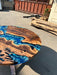 Your family deserves a gathering place to be proud of. This round table is made with combination of Walnut and Epoxy which give it antique and unique touch. You will love their mix color shades as well. The Round Dining Table with blue epoxy is a perfect spot for family time. Epoxy Blue Resin Table also saves the space in the room. Its rustic and industrial design is complimented by the blue epoxy coating that creates a beautiful contrast with the wood. The table is 72” in diameter and made to order to fit your space.The round epoxy walnut slab is supported by sturdy wooden legs.